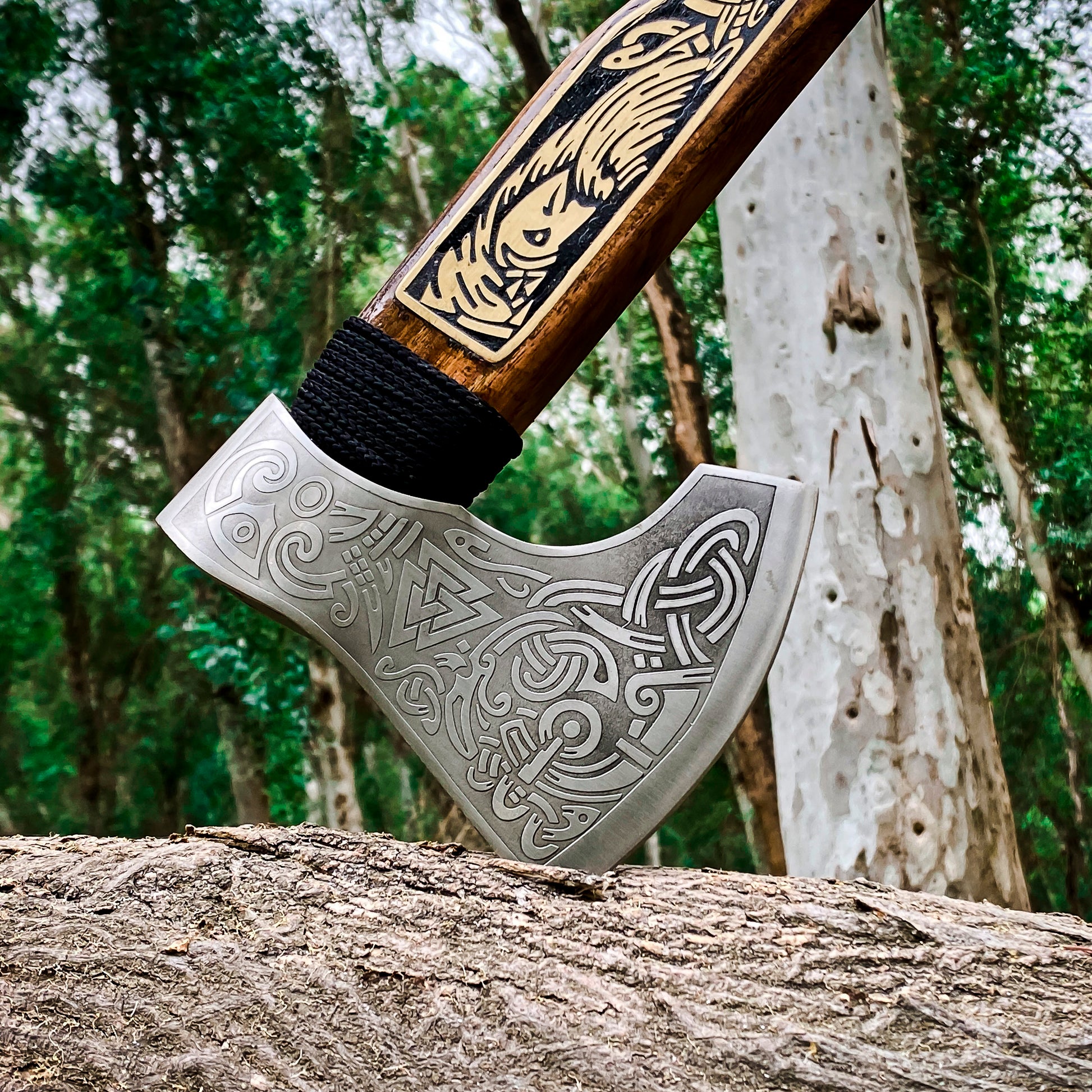 3. Unique Drawing of Odin and His Ravens: Adorned with a one-of-a-kind drawing of Odin "Allfather" and his faithful ravens, Huggin and Munnin, this axe is a visual masterpiece. The intricate design adds a touch of authenticity and mythological allure.