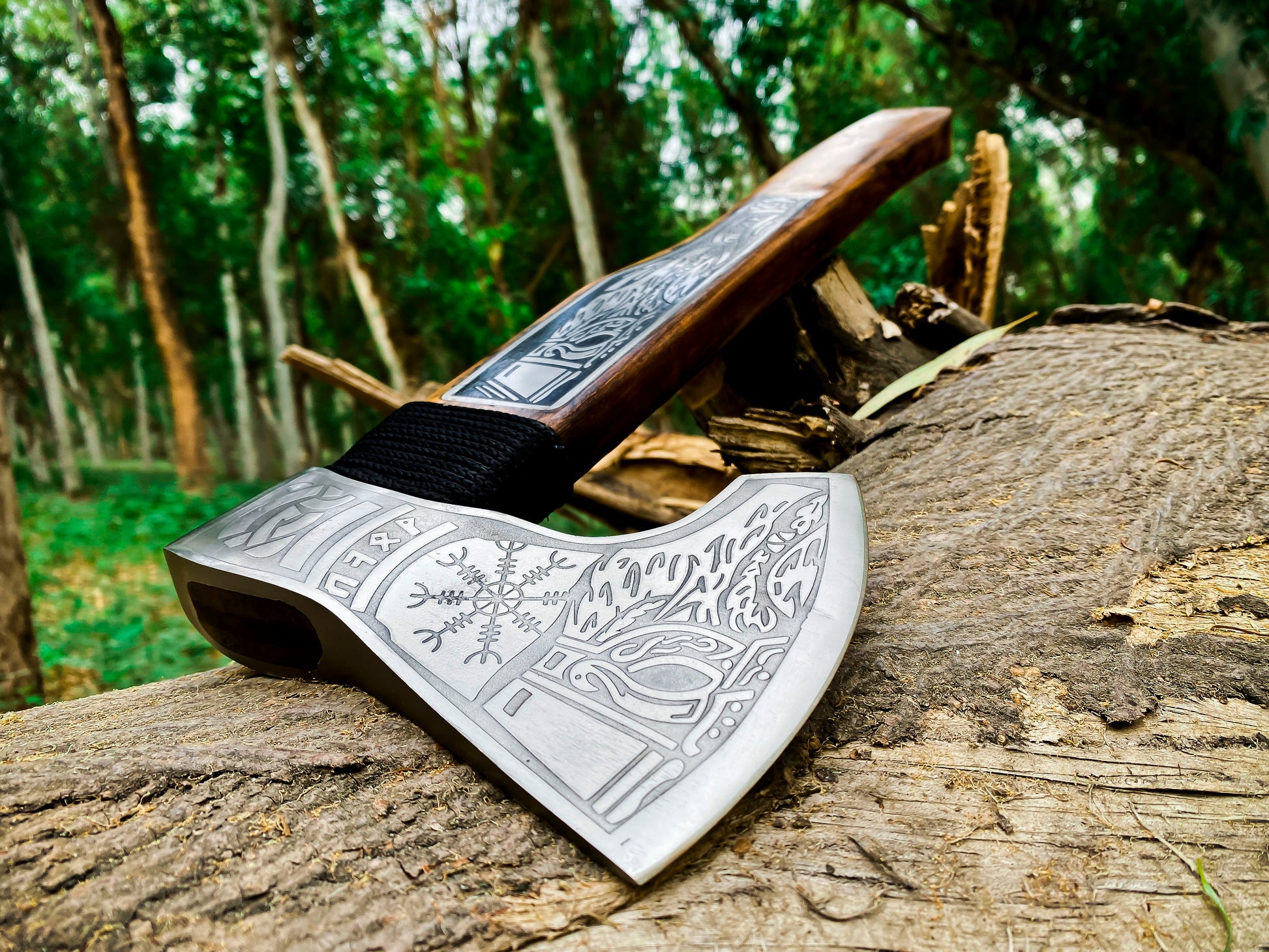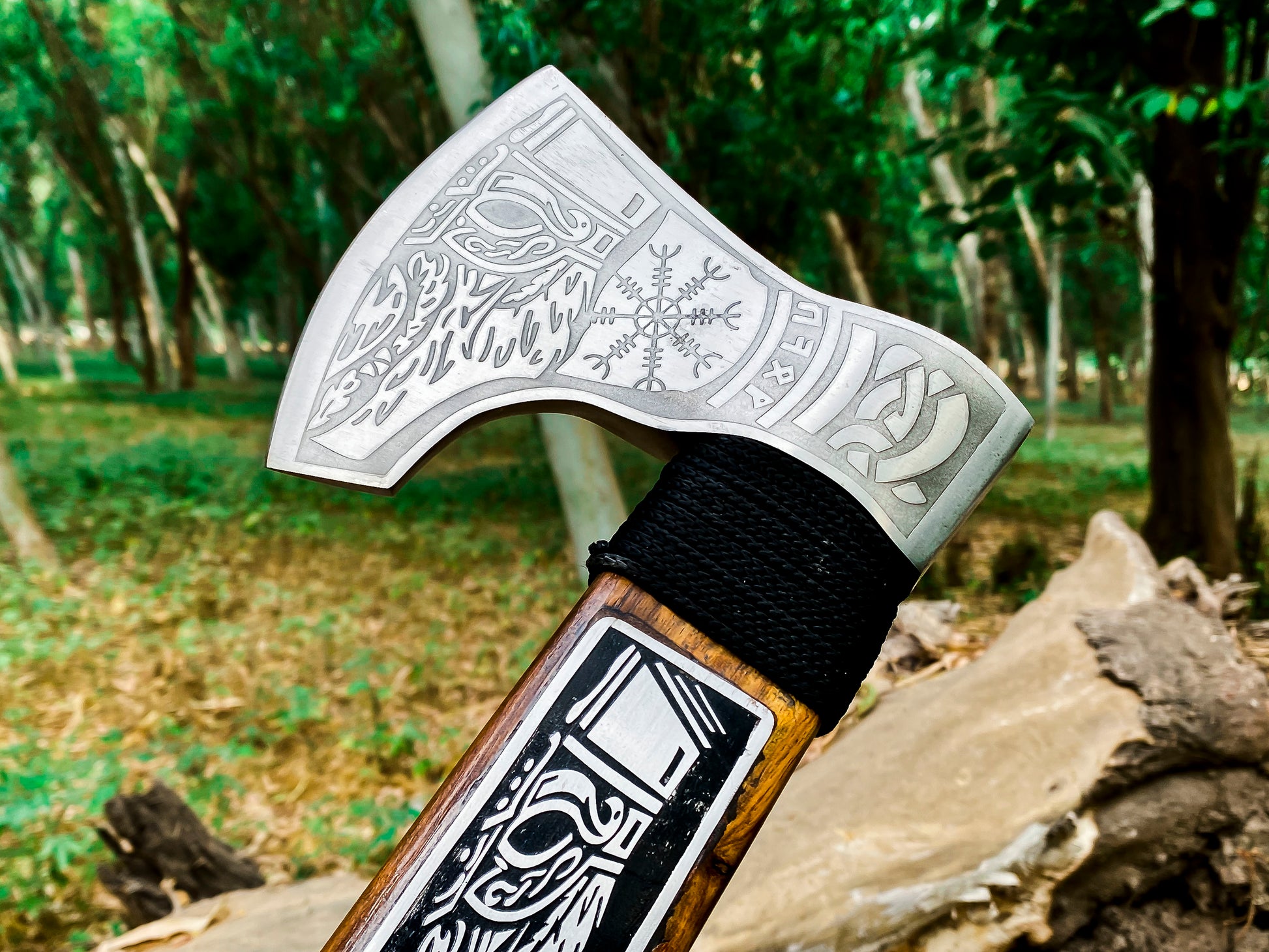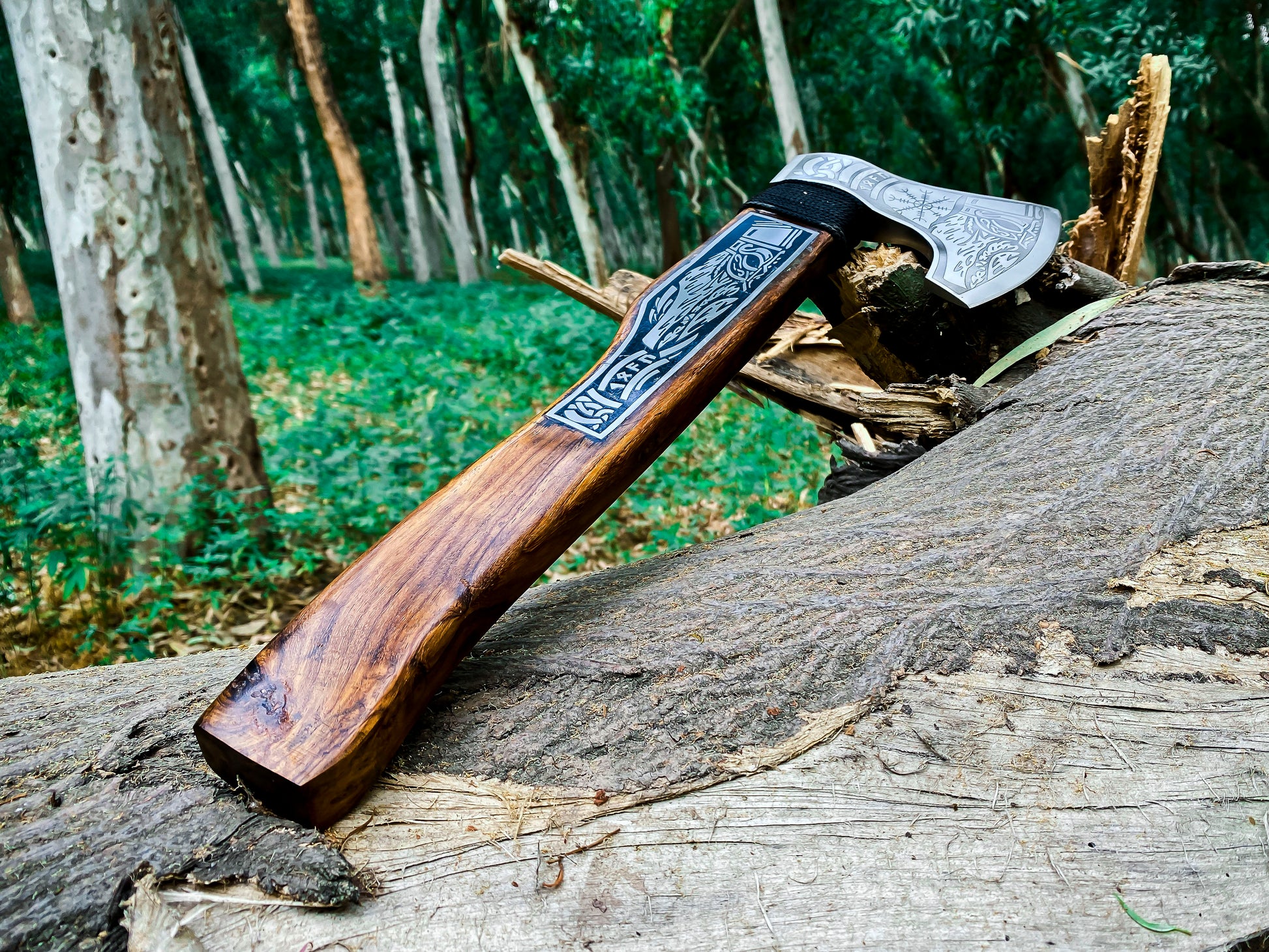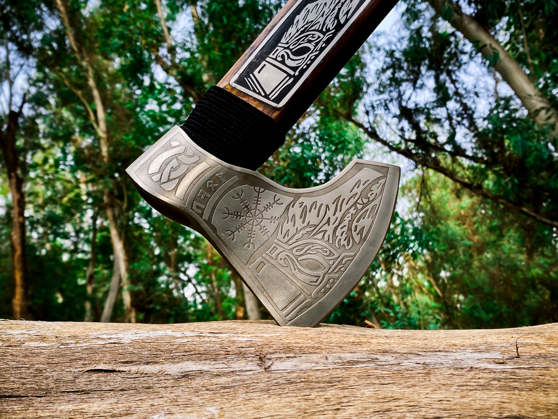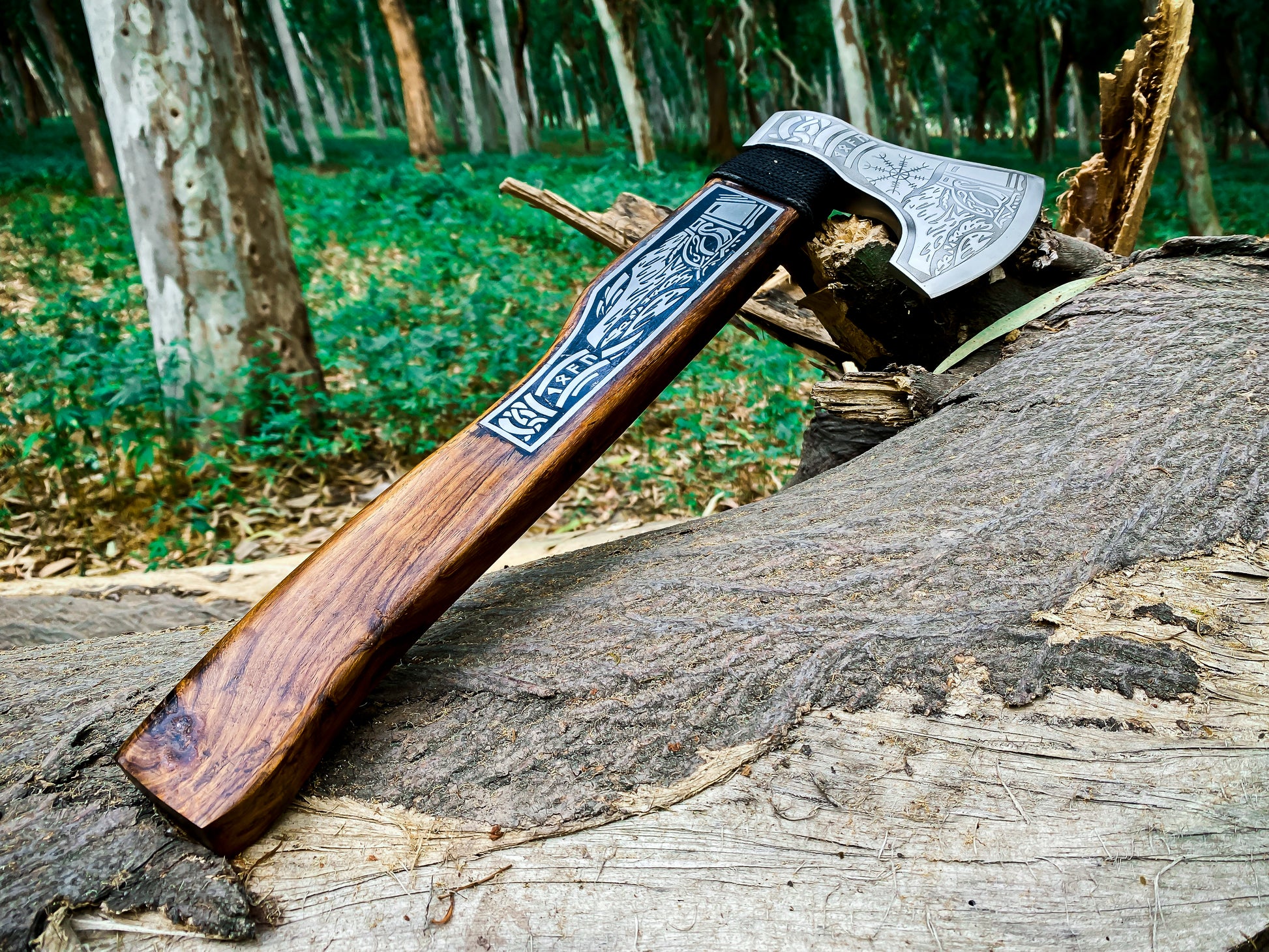 The Viking Odin Axe is a stunning fusion of art and function, meticulously designed with the following features: