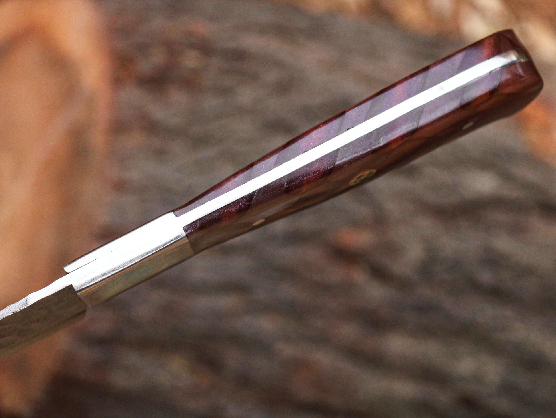 - Finish: The blade often has a polished or satin finish, which enhances the pattern and adds to its visual appeal. Some Damascus steel knives also have a hammered or textured surface.