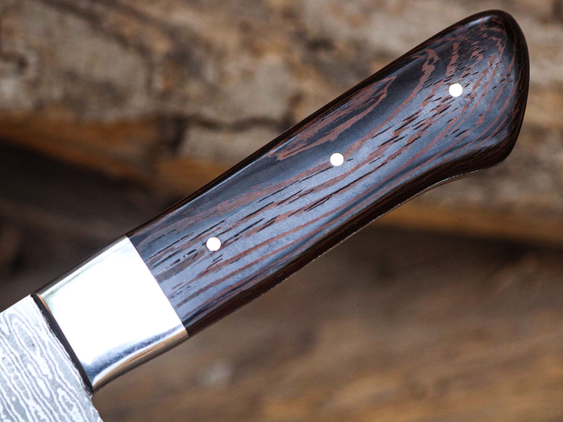 - Materials: The handle of a Damascus steel chef’s knife can be made from various materials, including wood, synthetic composites, or metal. High-quality handles are ergonomically designed for comfort and balance.